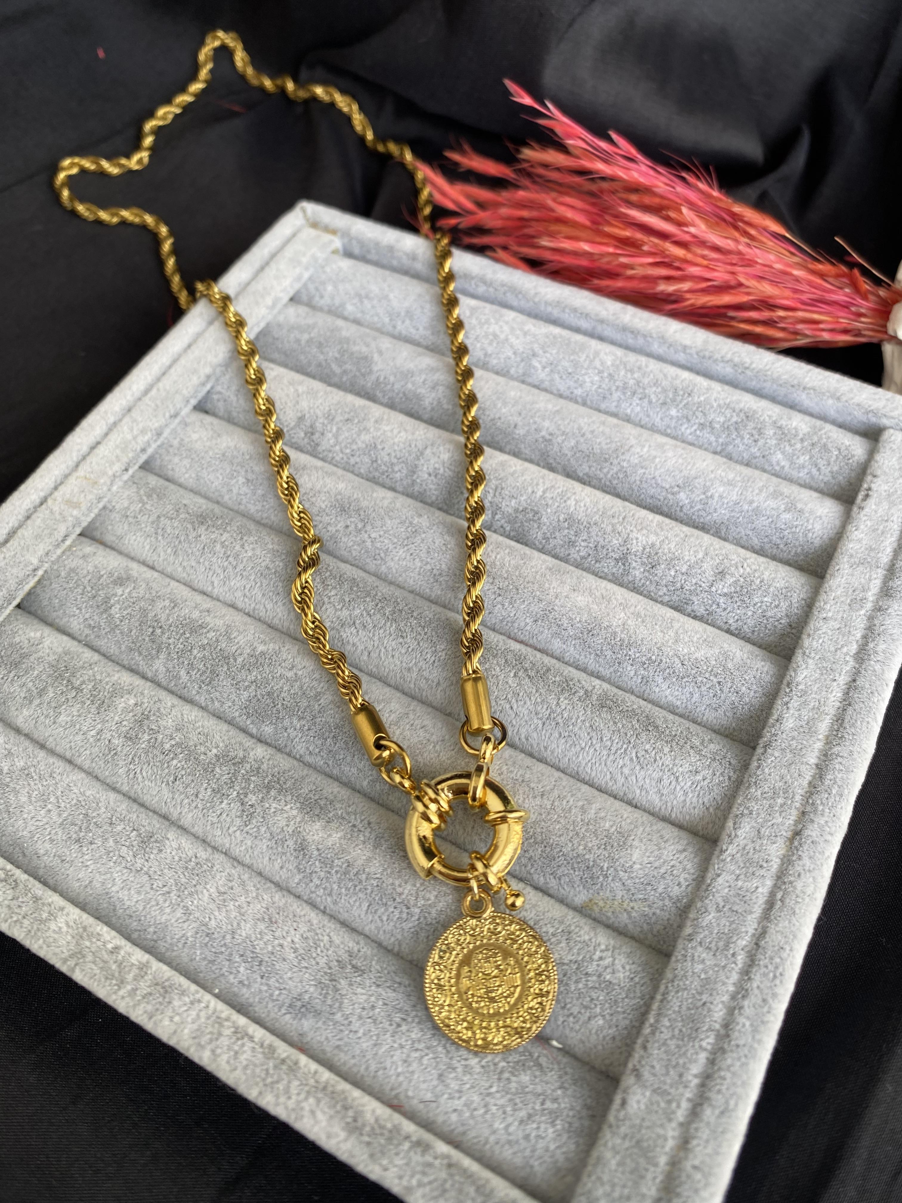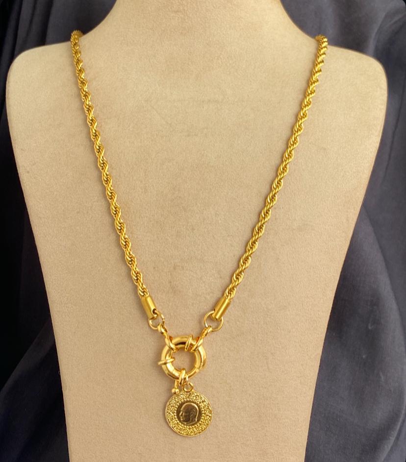 Burgu zincir gemici kilitli çelik kolye 60 cm