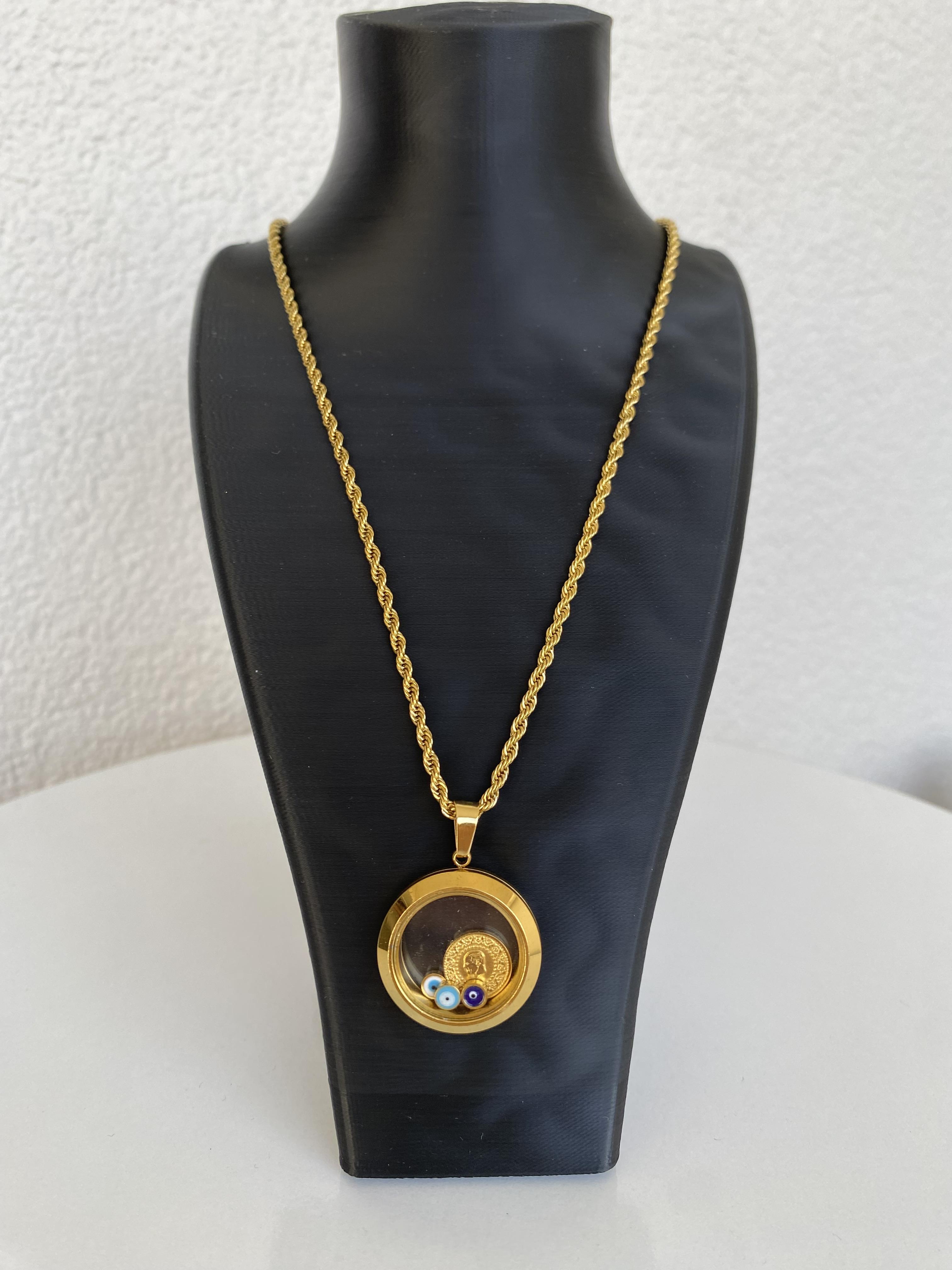 Cam Fanus kapağı açılabilir burgu zincir kolye 60 cm