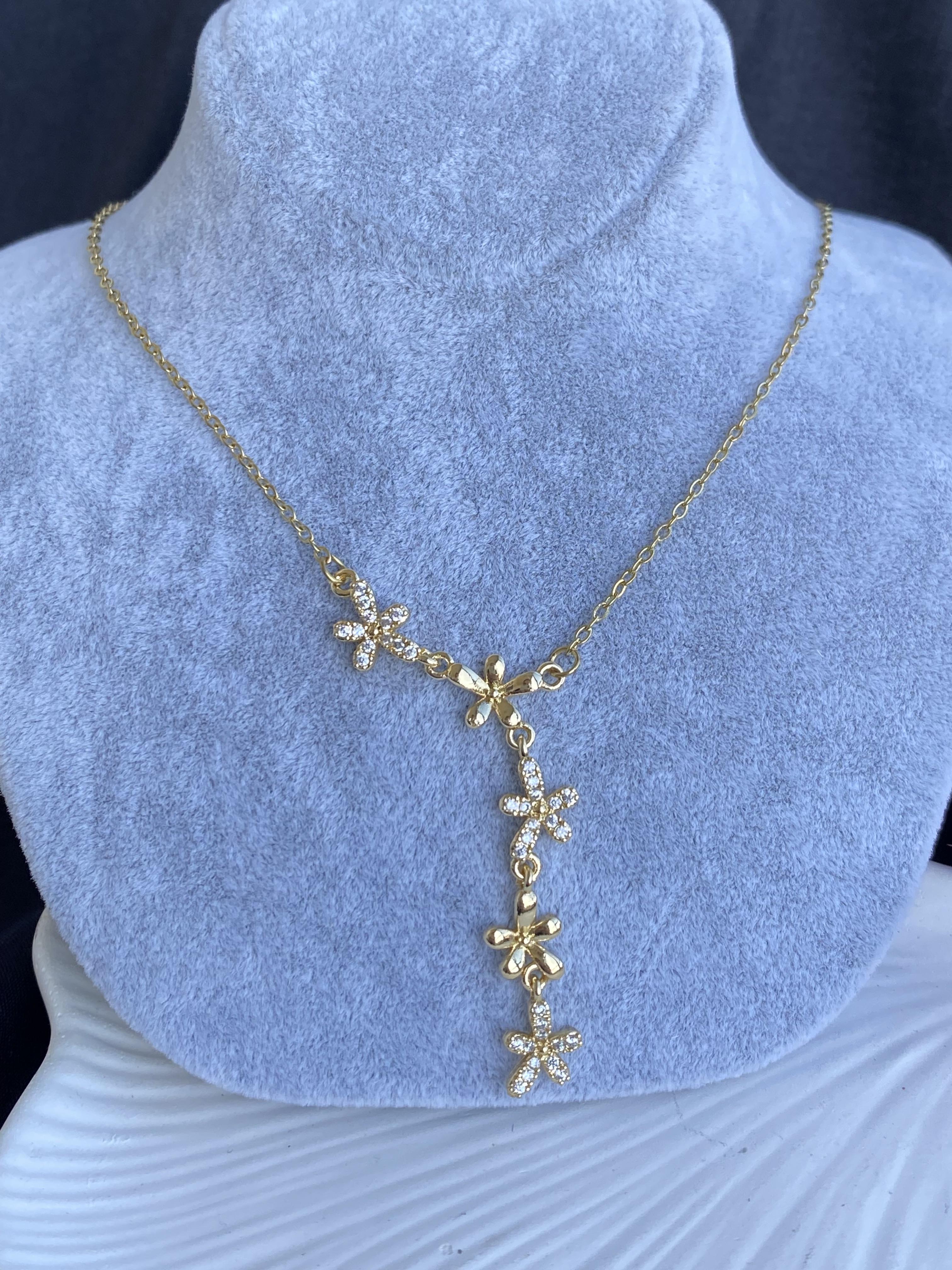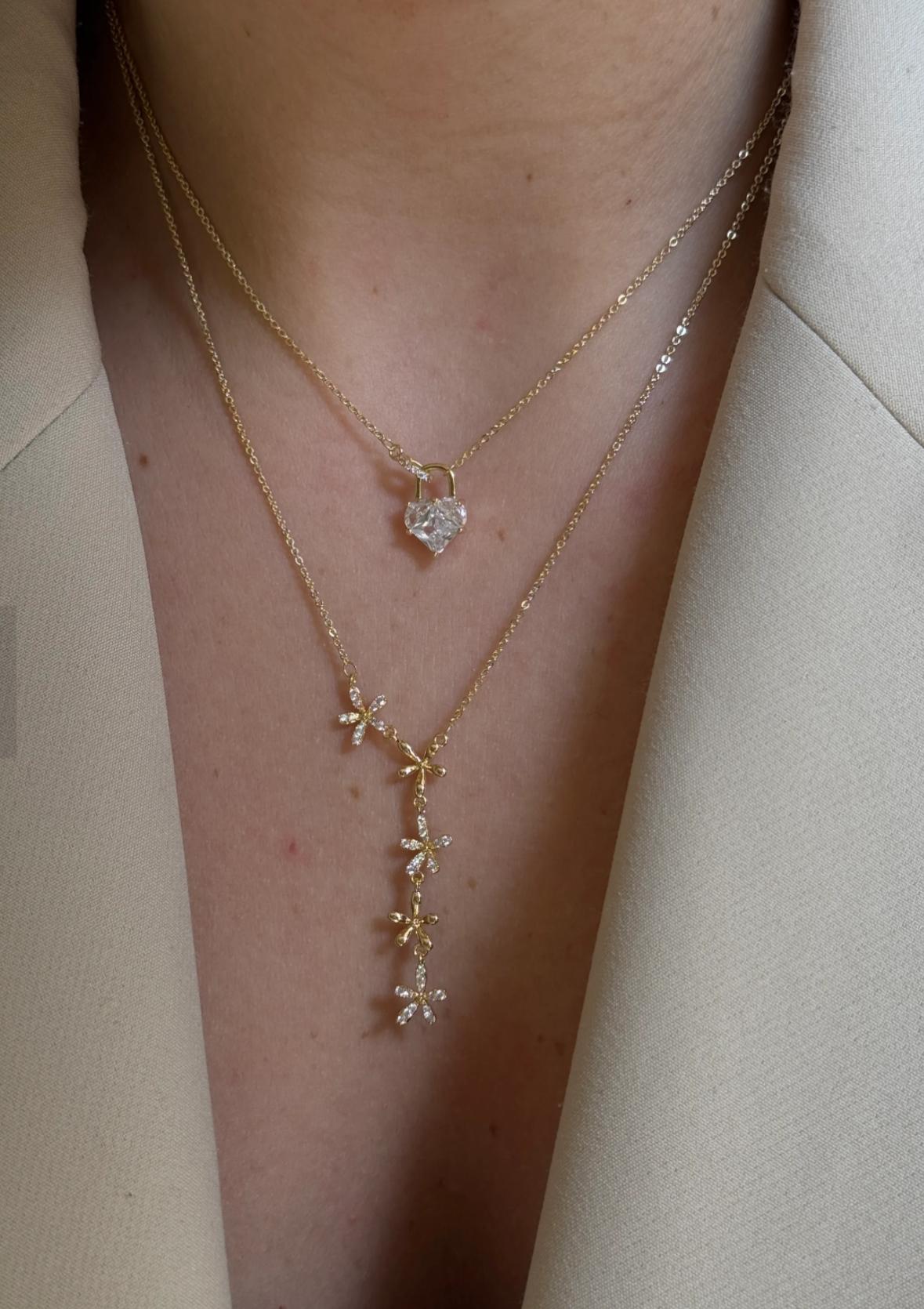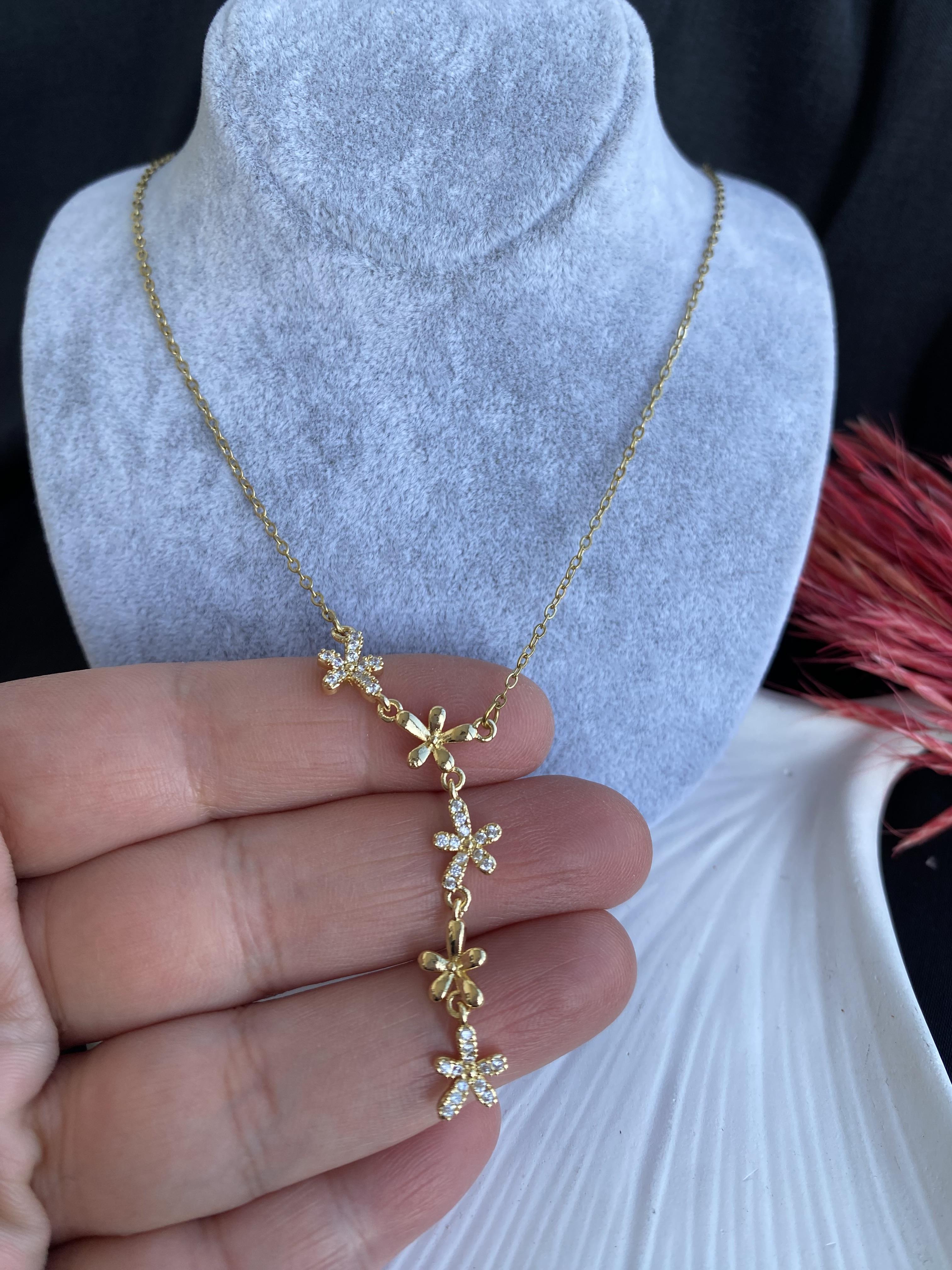 Çelik | Gold Zirkon taşlı sallantılı Y kolye