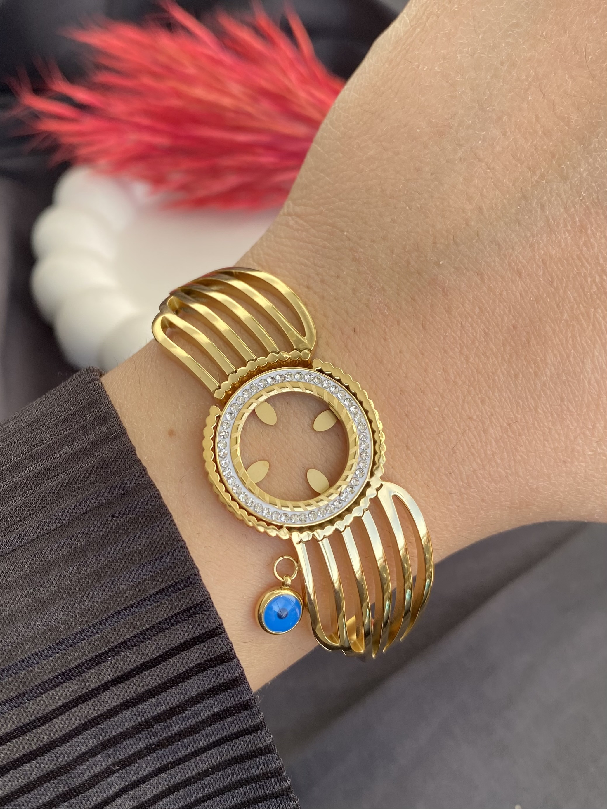 Çeyrek altın uyumlu Güneş model Çelik kelepçe