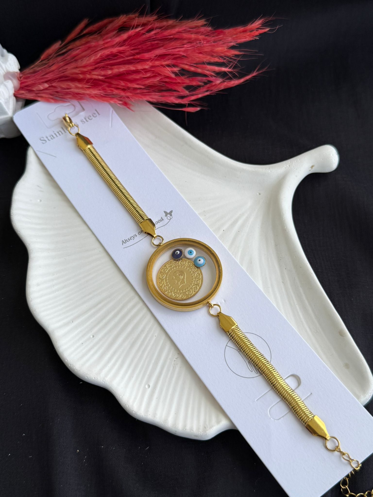 Çeyrek ve yarım altın uyumlu fanus kapaklı çelik bileklik