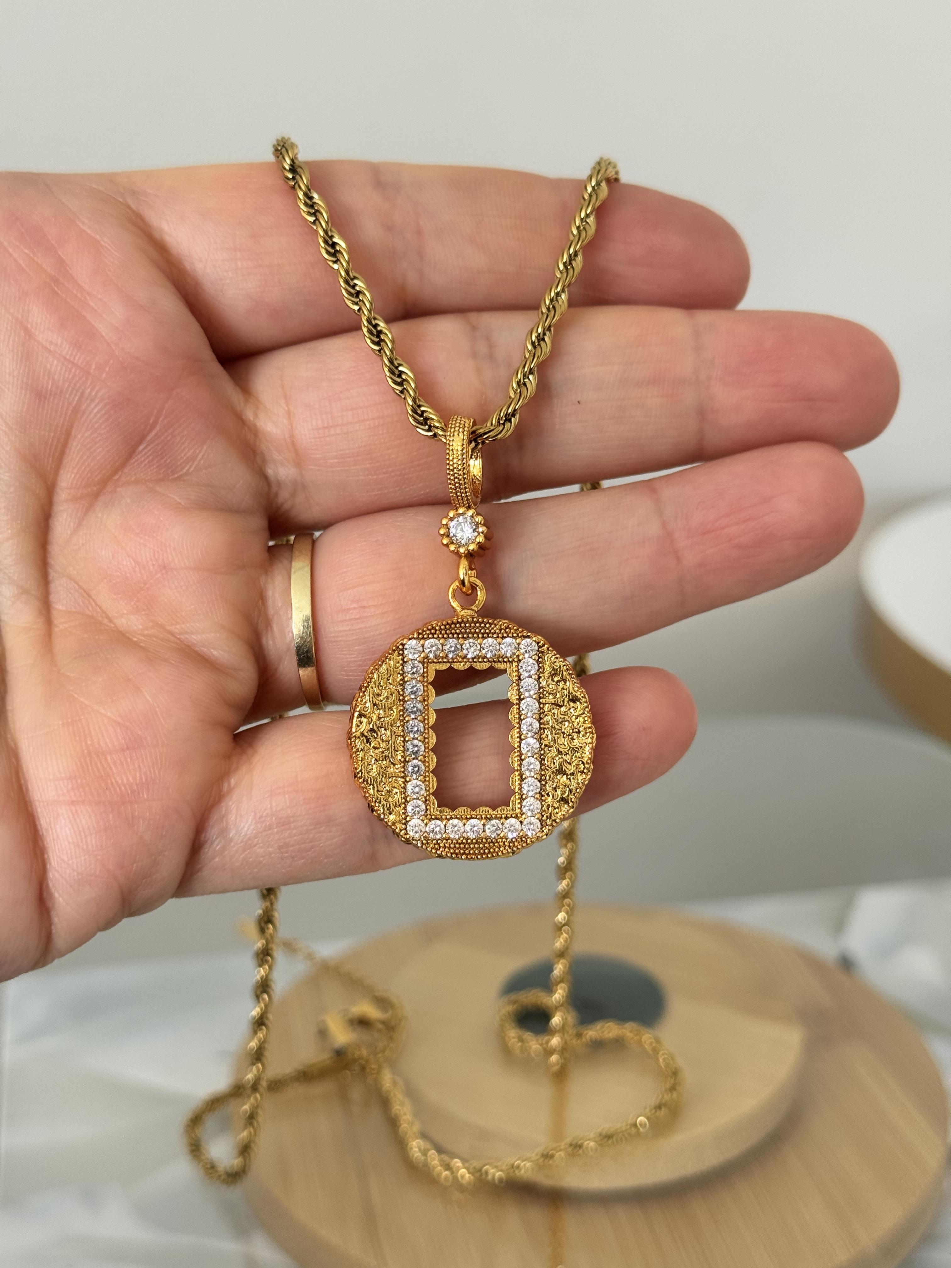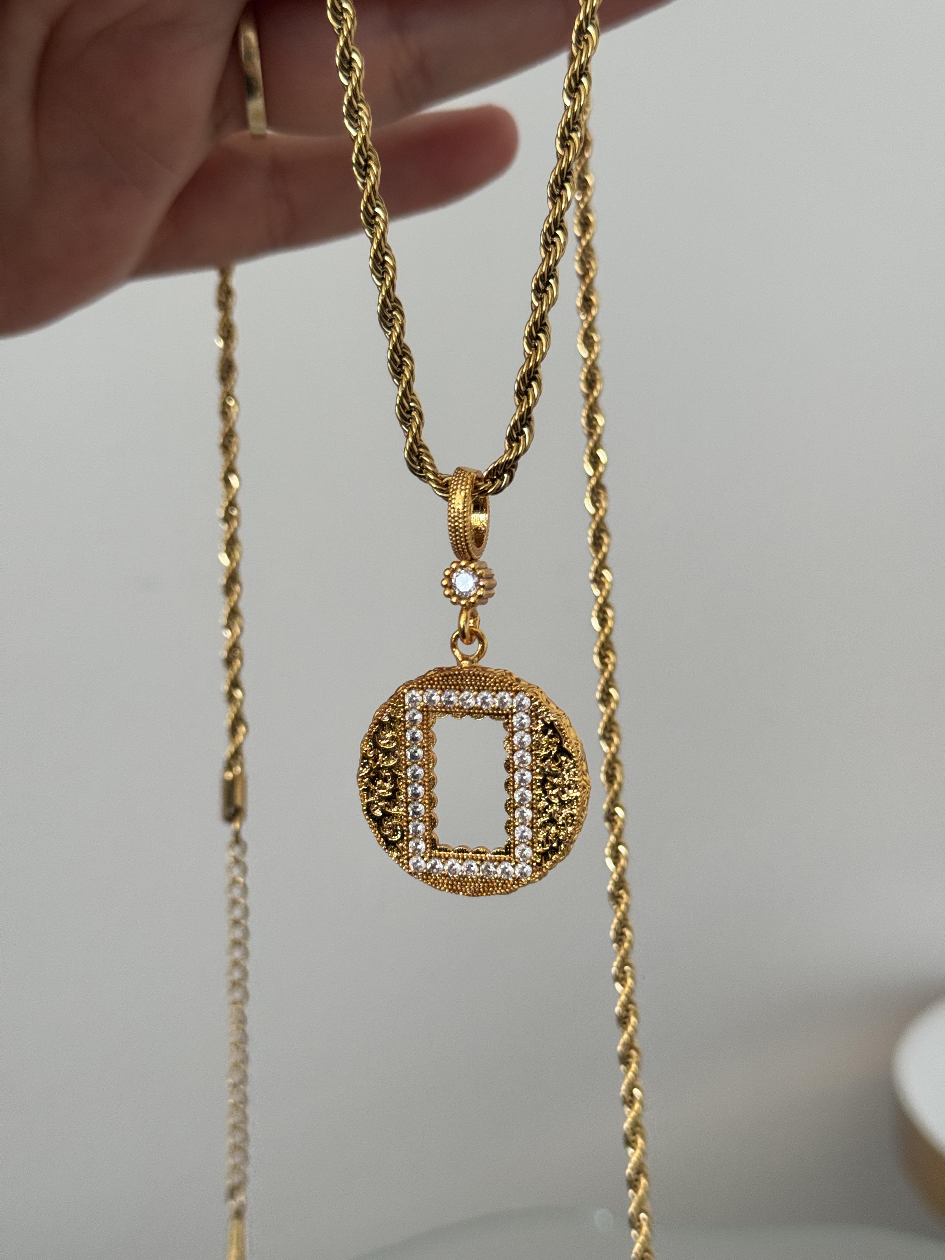 Gram altın uyumlu yuvarlak çerçeve burgu zincir kolye