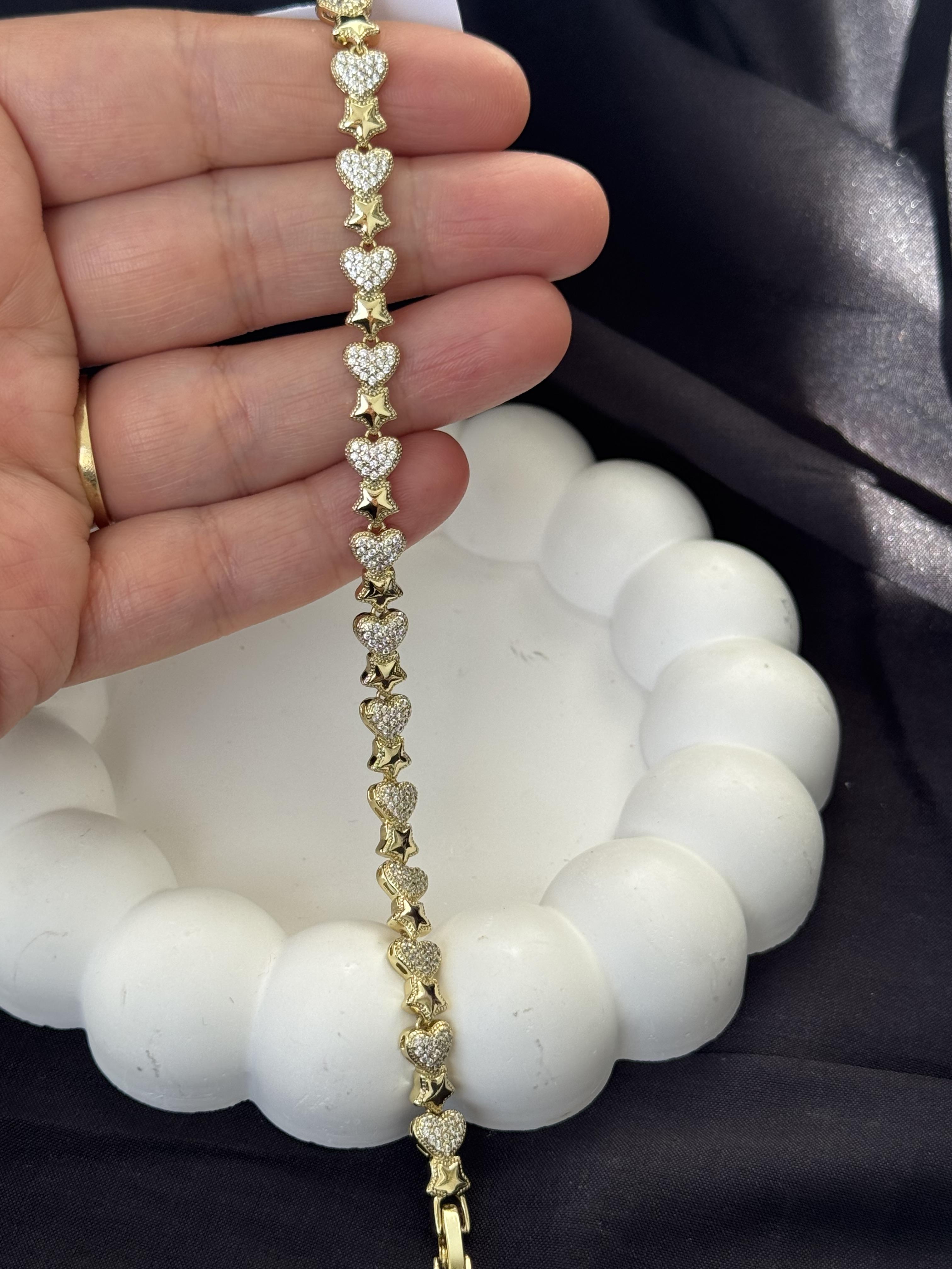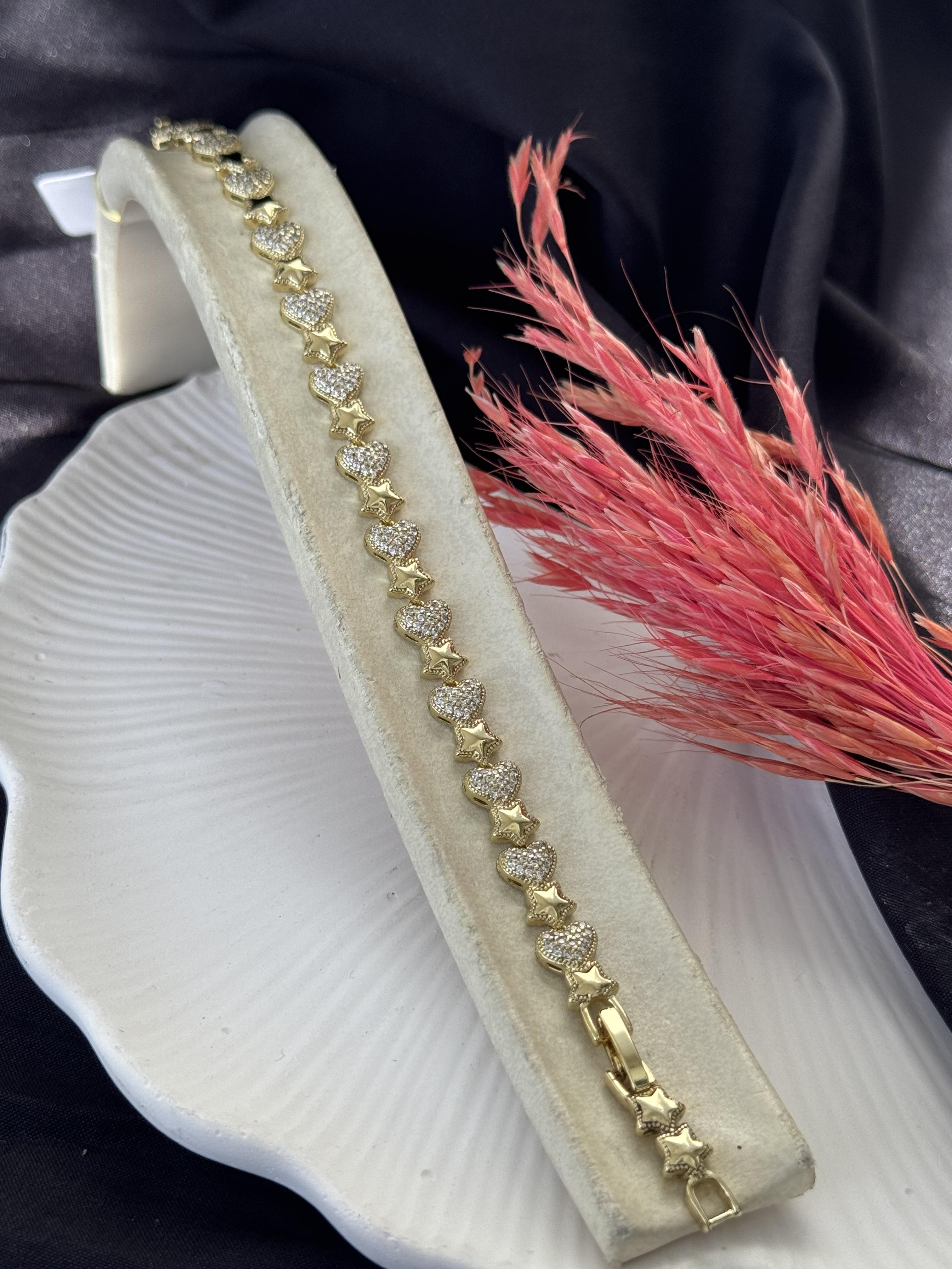 Kalpli yıldız detaylı 14k altın kapalama çelik bileklik
