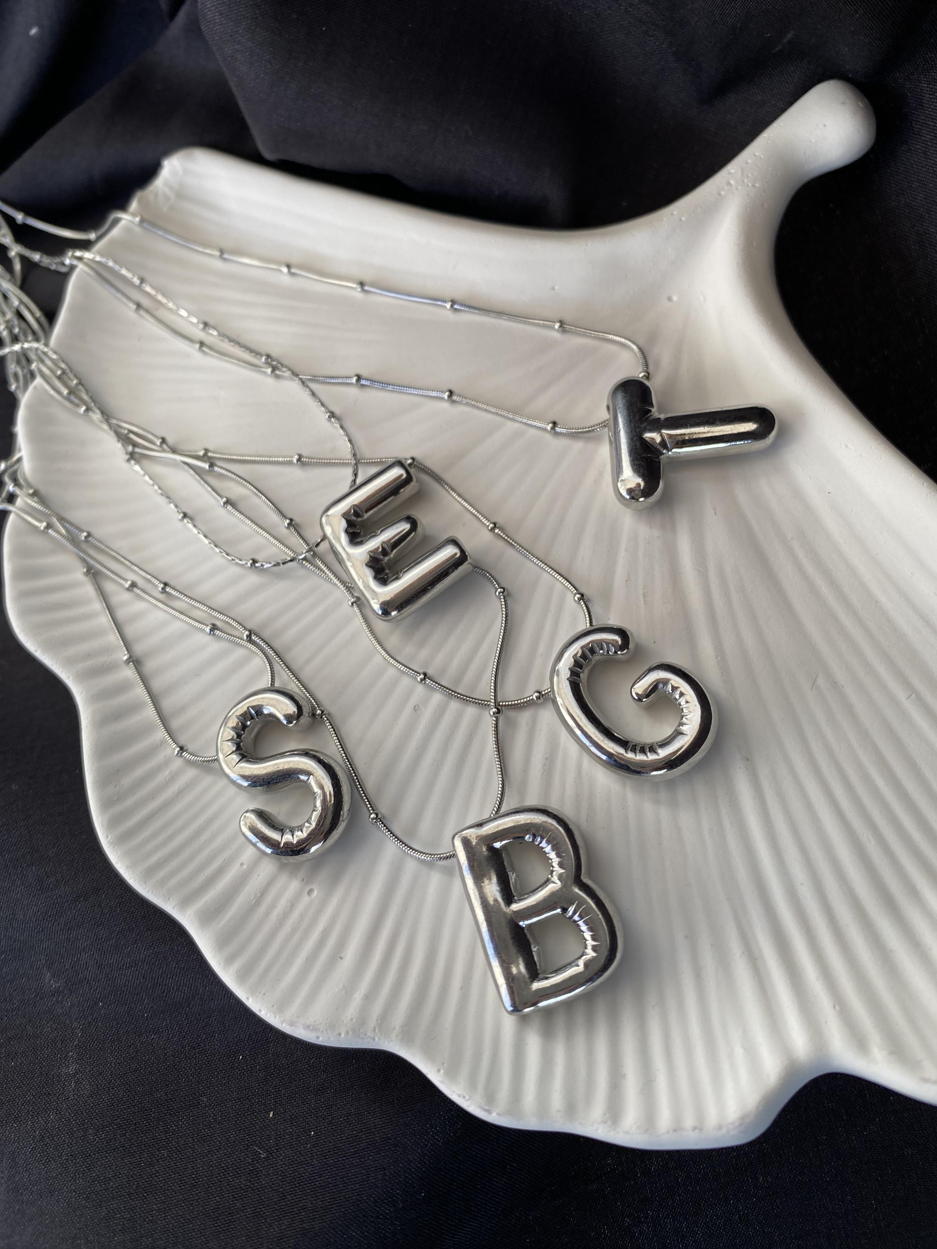 Silver Balon harf Çelik kolye (istenilen harfi sipariş notunda belirtiniz)