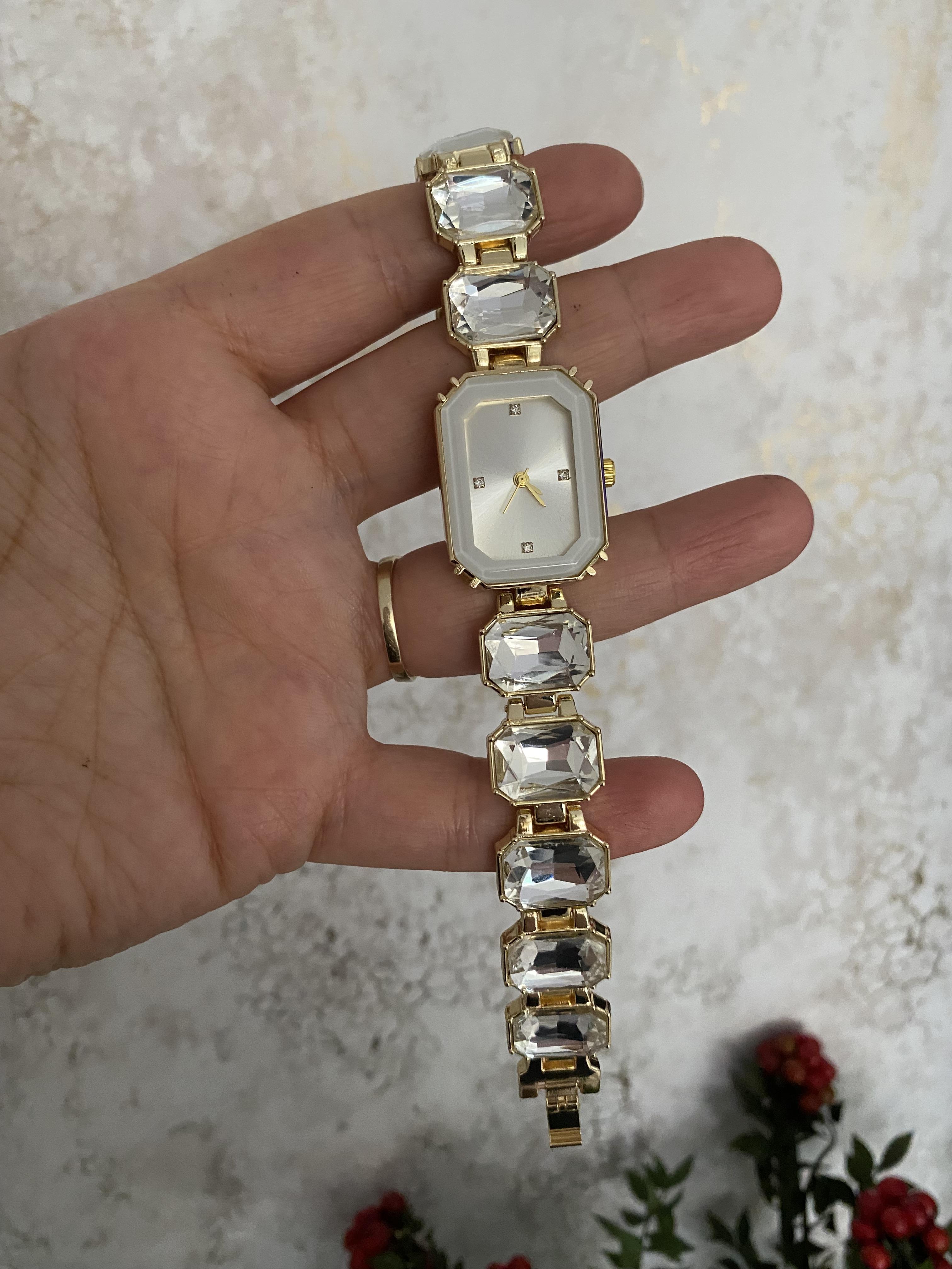 Swarovski zirkon taşlı beyaz renk bayan saat