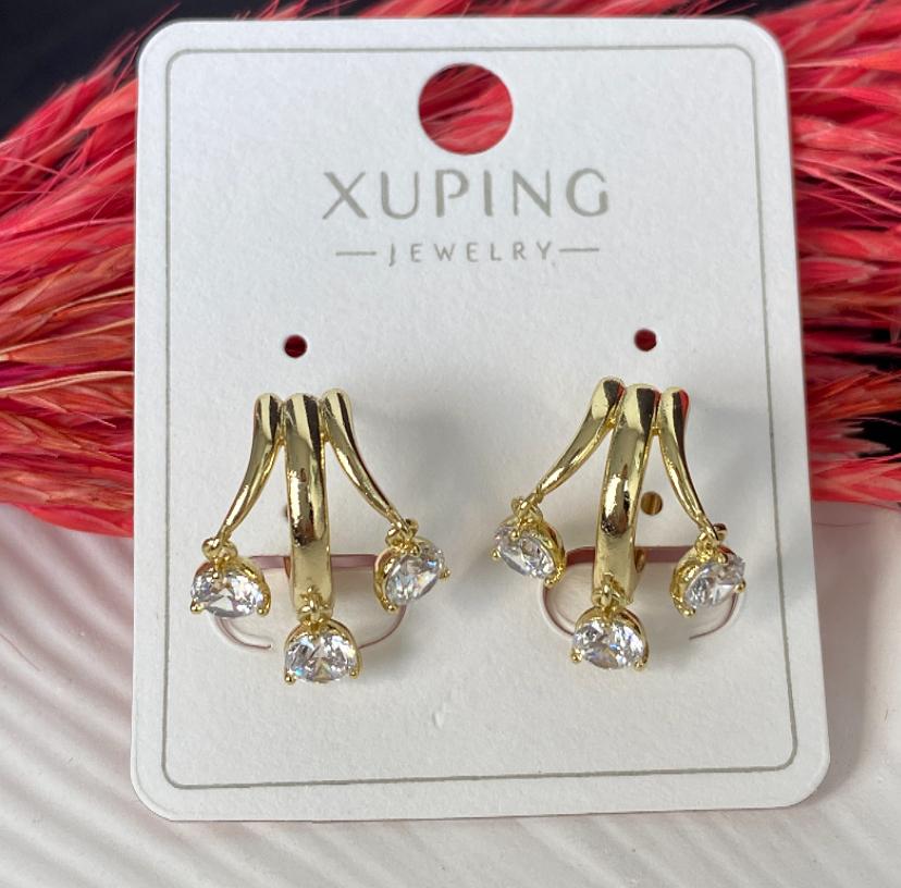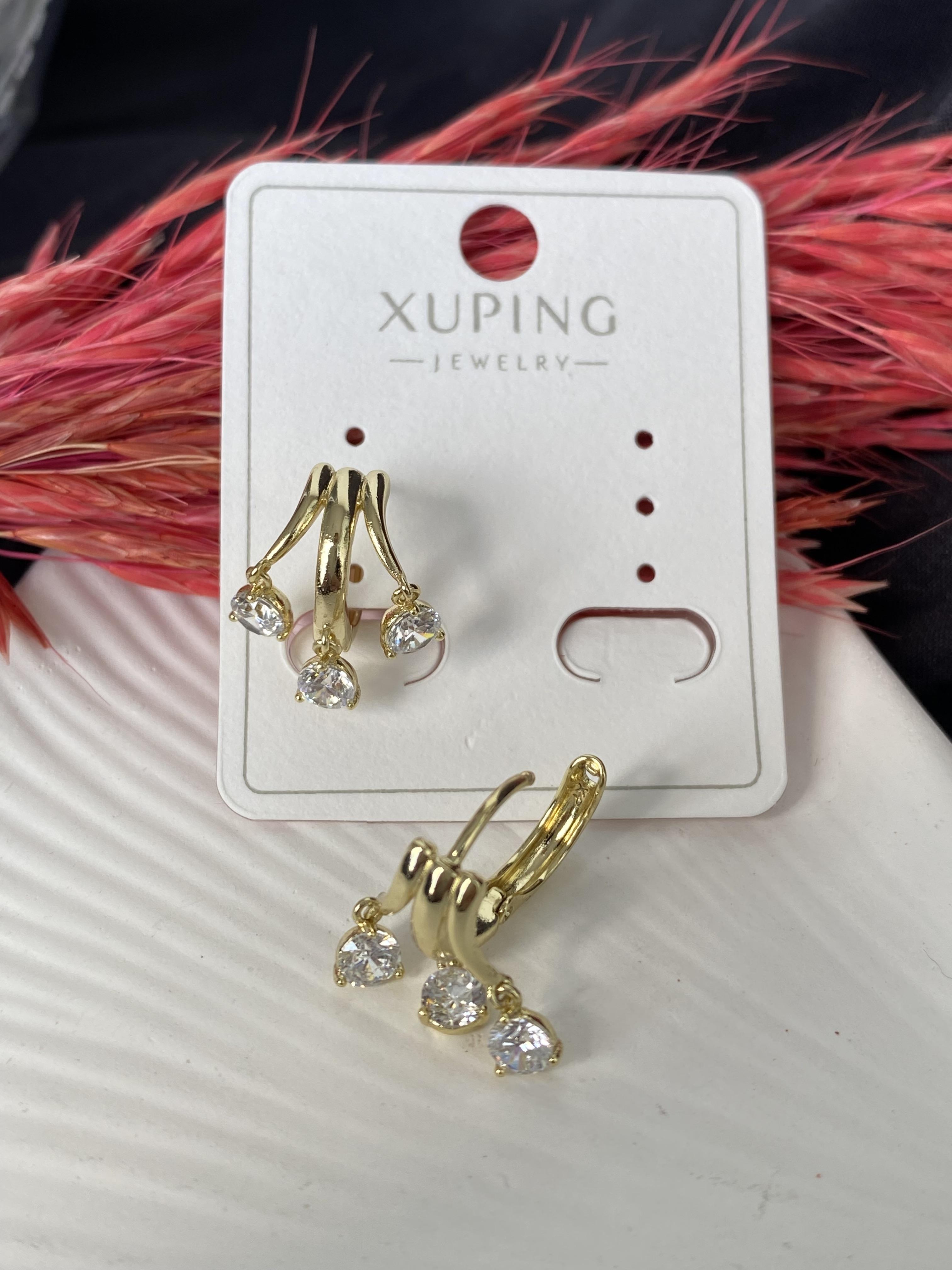 Üçlü görünüm tek taş detaylı çelik küpe