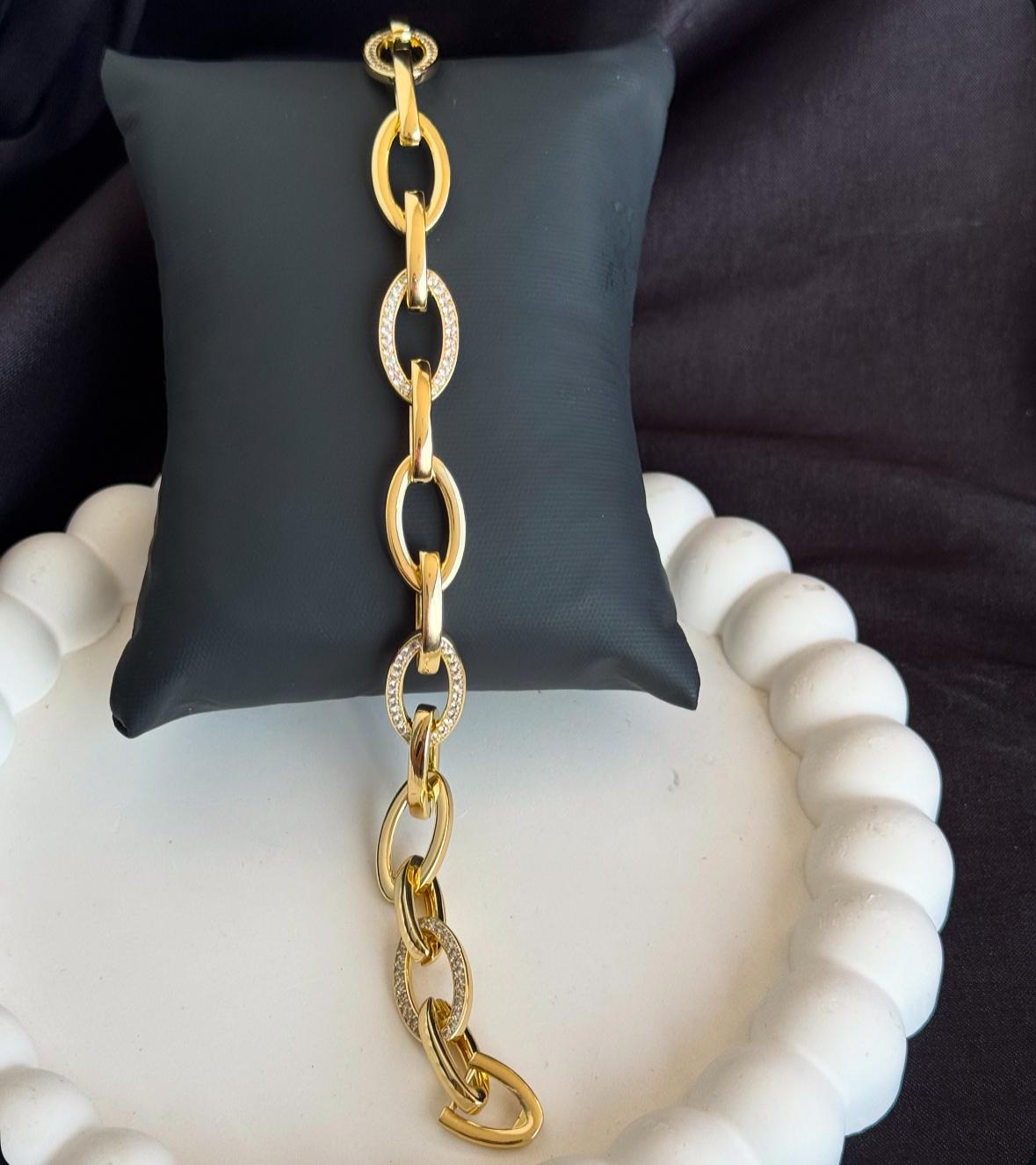Zirkon taşlı oval kuyumcu model Çelik bileklik
