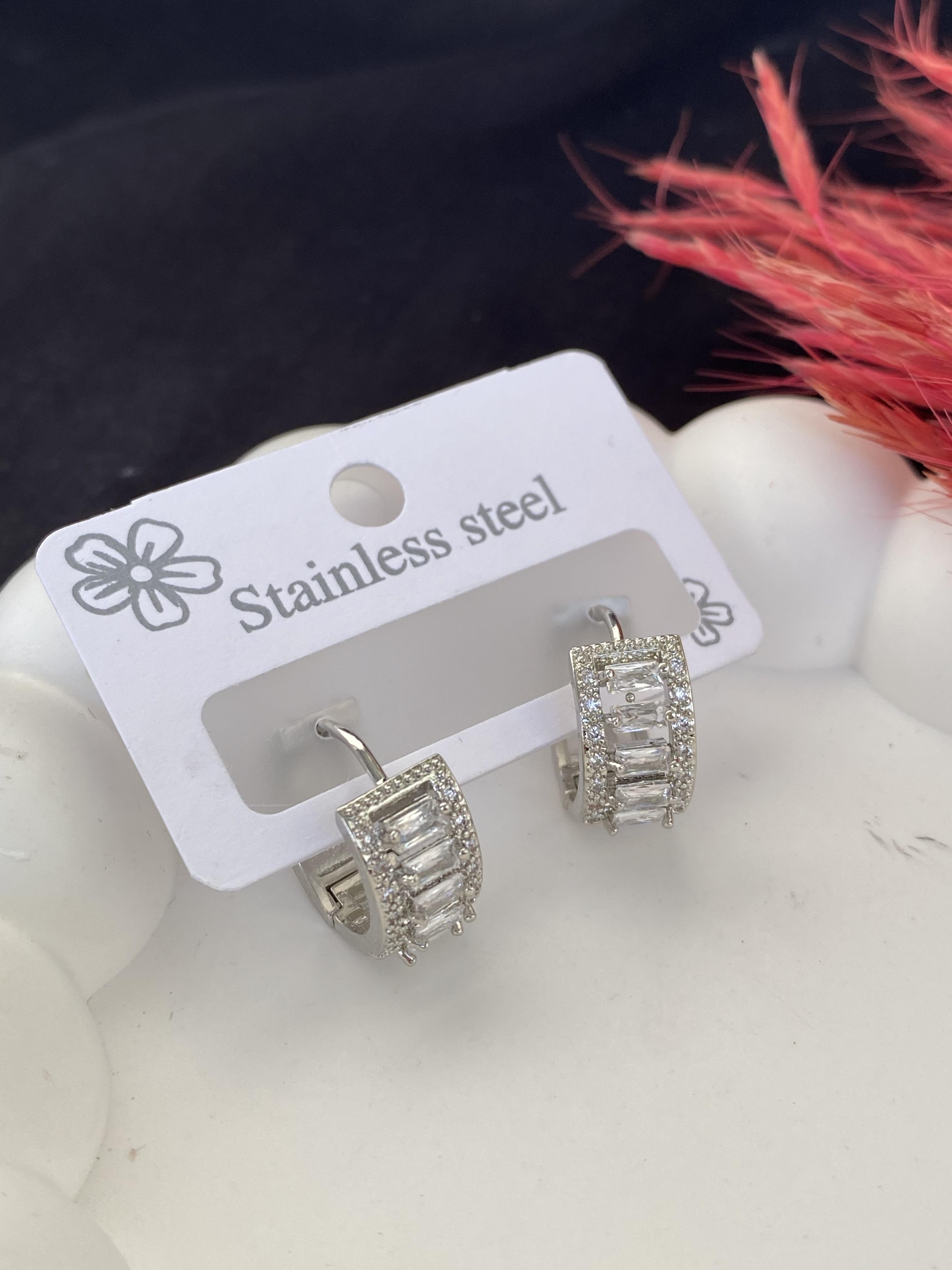Zirkon taşlı silver çelik küpe